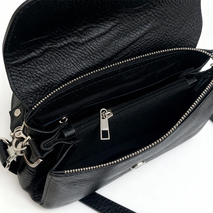 کیف دوشی زنانه چرم طبیعی آروین چرم AR-136 ساخته شده از چرم طبیعی مرغوب می باشد، شامل دو محفظه زیپ دار برای نگهداری لوازم مختلف است.